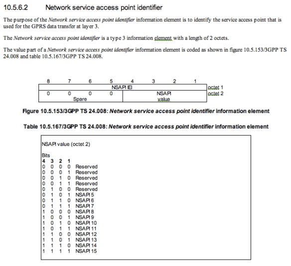 When I first started looking into this problem, I came up with the idea of getting the mobile device to make a clear distinction between on-device and tethered data consumption. The ideal identifier to use for this task is the Network Service Access Point Identifier – or NSAPI.
