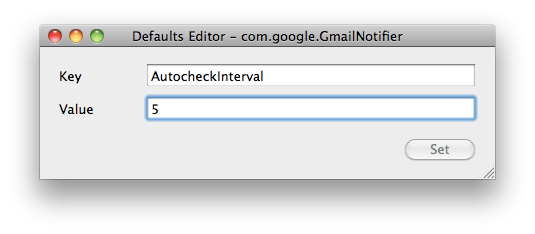 Alternatively add or edit the AutocheckInterval string in ~/Library/Preferences/com.google.GmailNotifier.plist using Property List Editor.